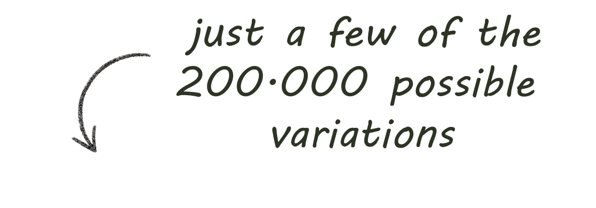 Combine 32 styles in 100+ variations to create over 200.000 unique stacks.